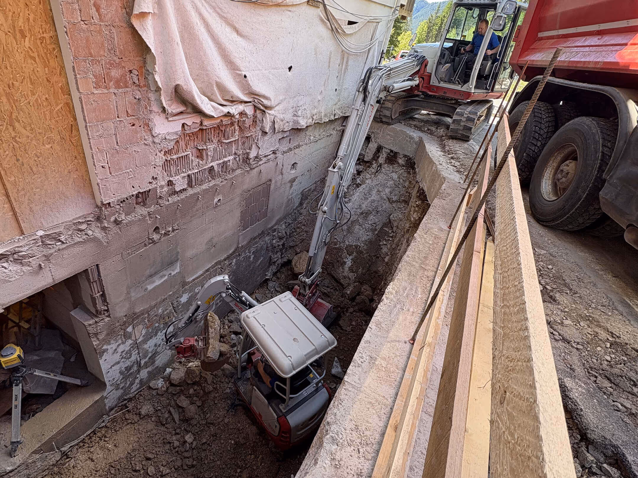 BeimHotel durften wir am Zubau des Hotels mitarbeiten. Wir durften den Aushub einesneuen Aufzugsschachtes erledigen.
